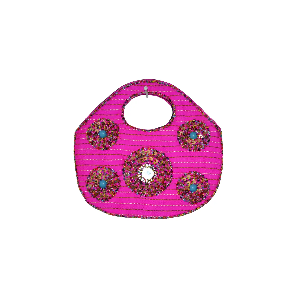 What You Get: A pink shisha tote featuring beaded handle, mirror work panels, and beaded-handle mirror bag construction that creates comfortable carrying with glamorous presentation.