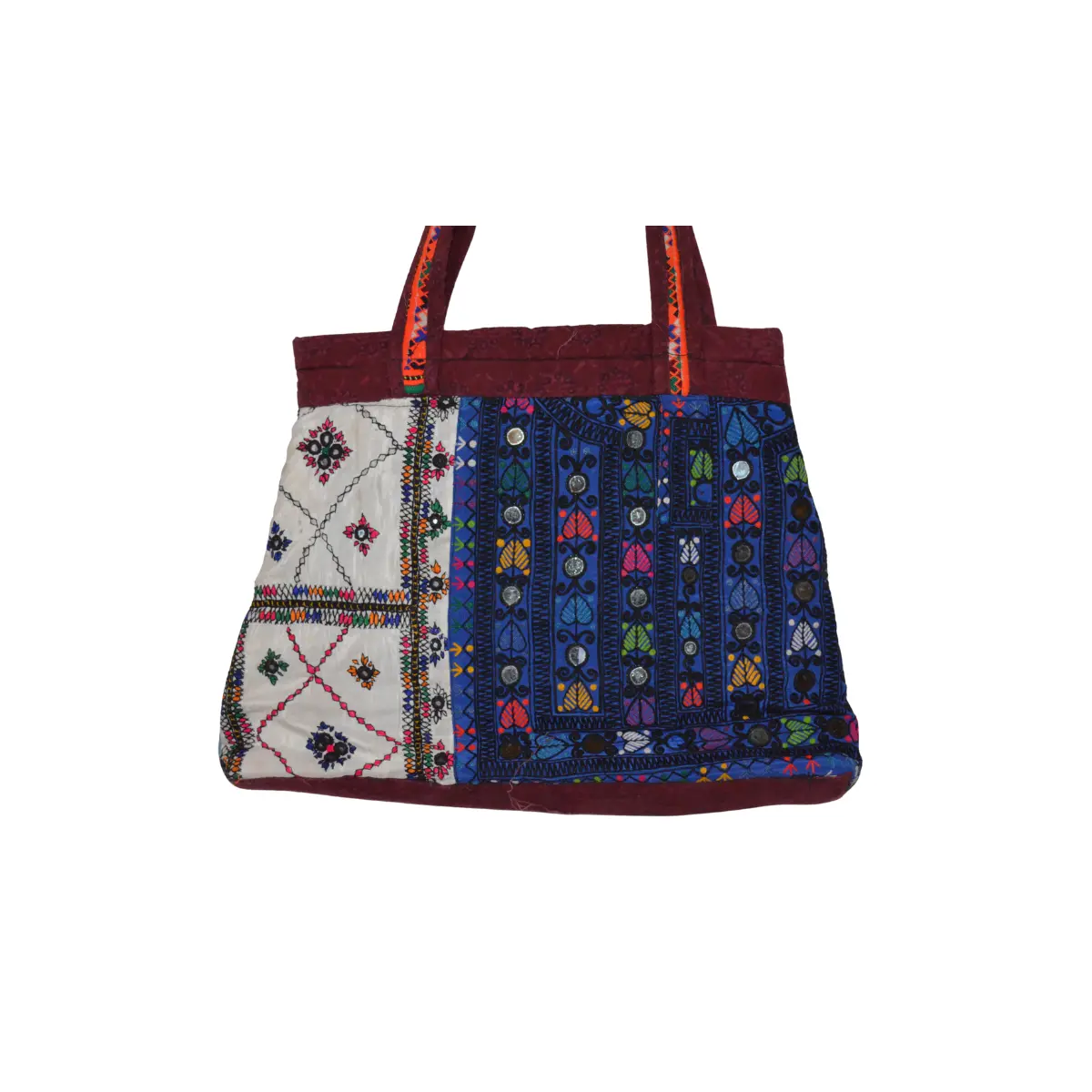 What You Get: A pieced ethnic handbag featuring patchwork construction, complementary embroidery, and patchwork folk purse design that tells stories through fabric choices.
